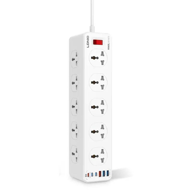 سایر ویژگی ها:دارای 10 پریز طول کابل: 2 متر توان کلی: 2500W دارای کلید قطع و وصل جریان مقاومت بالای بدنه در برابر حرارت محافظت شده در برابر تغییرات جریان مجهز به 5 پورت USB و یک پورت Type C