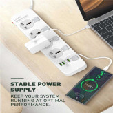 چندراهی برق الدینیو مدل SC4408 دارای 4 عدد پریز با کلید و پورت شارژر USB به تعداد 4 عدد خروجی برق است. یکی از مزایای استفاده از چندراهی برق الدینیو مدل SC4408، این است که بدون نیاز به هیچ گونه تبدیلی برای 2 شاخههای رایج در ایران قابل استفاده خواهد بود و 4 پورت USB نیز بدون آداپتور یعنی با کابل مستقیم به برق متصل میشود. از ویژگی های متمایز کننده این چندراهی قابلیت ضد گرما بودن آن است. همچنین از دستگاه های برقی شما در برابر شوک الکتریکی و تغییر ولتاژ محافظت می کند. چندراهی برق الدینیو مدل SC4408 دارای نشانگر LED بوده و تا 10 آمپر ظرفیت عبور جریان برق را دارد. از این رو دقت کنید ابزاری که به آن متصل میشود نیز معادل همین مقدار جریان باشند. طول کابل چندراهی برق الدینیو مدل SC4408 برابر با 2 متر بوده و میتواند تا شعاع 2 متری را به خوبی پوشش دهد.